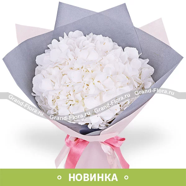 Уменьшенный: гортензия белая - 1 шт., упаковка, лента.